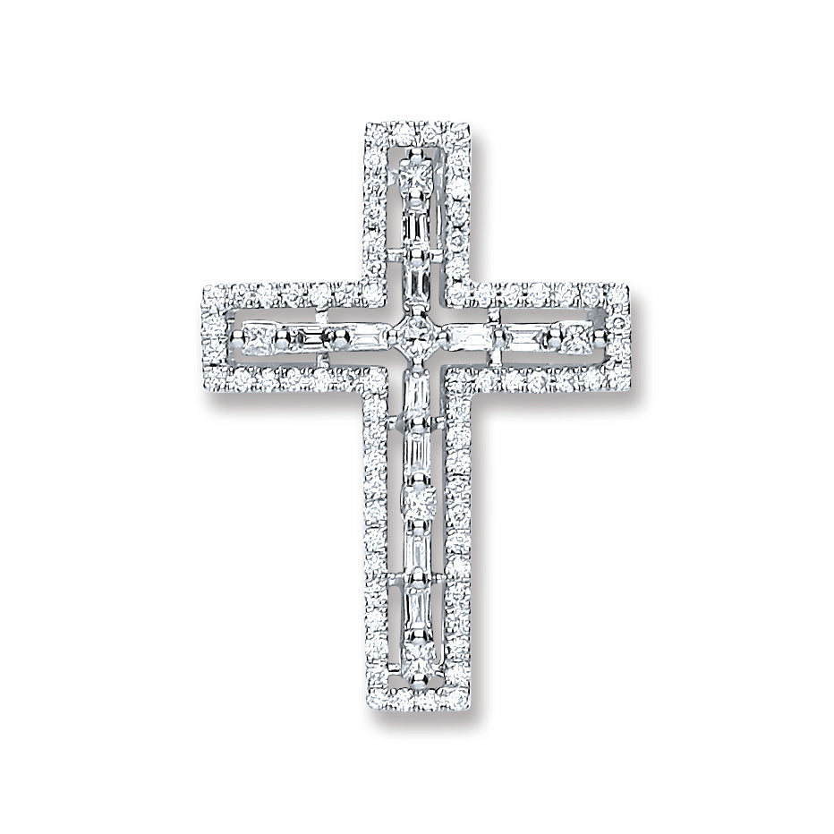 18ct White Gold 0.50ct Baguette & Brilliant Cut Diamond Cross Pendant TGC-DPD0384