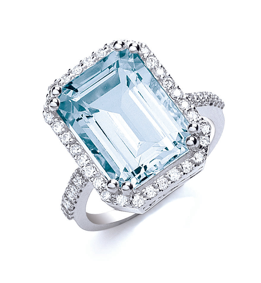 A stunning diamond and aquamarine ring. A shimmering ring that catches the light beautifully.