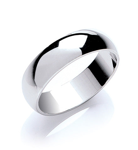 A polished 6mm D shaped wedding band. Stylish and simple.