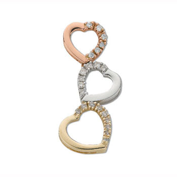 9ct Three Colour Gold 0.15ct Diamond Heart Drop Pendant TGC-DPD0212