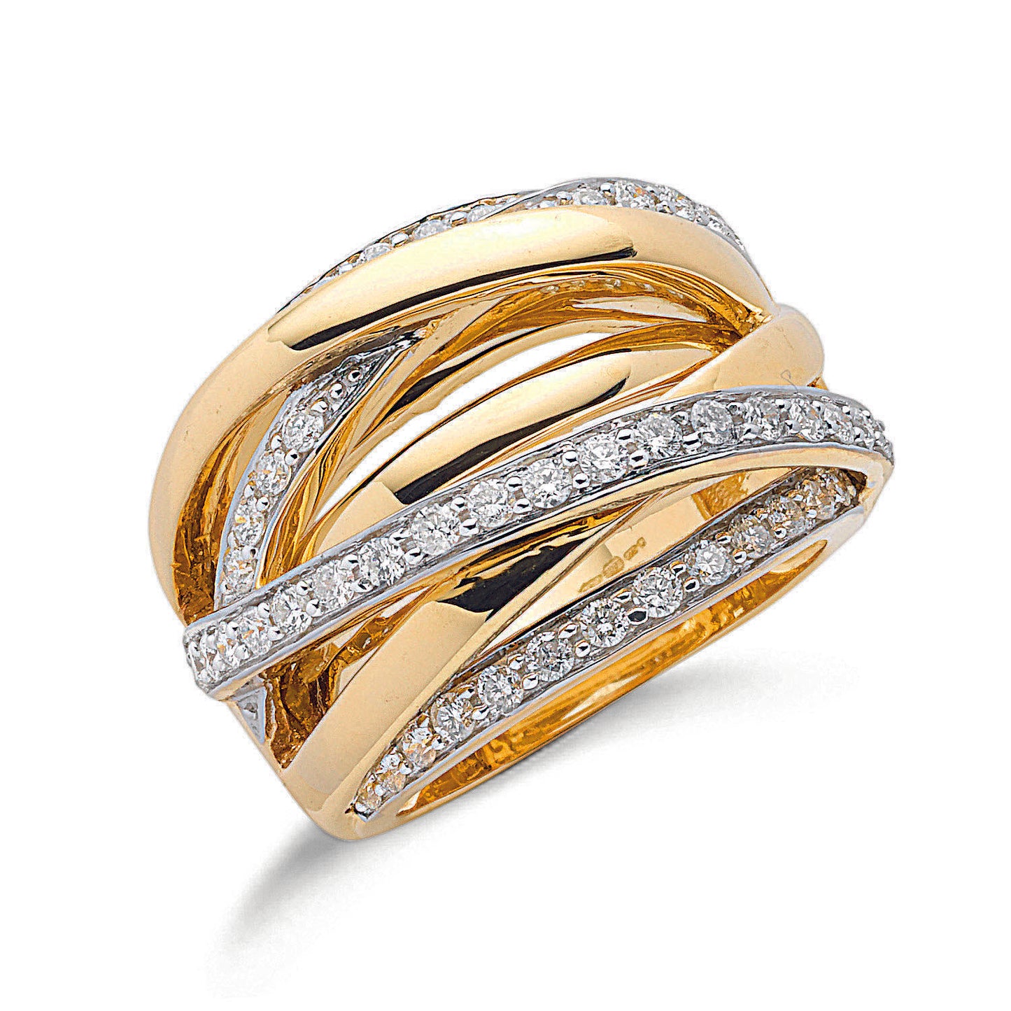 9ct Yellow Gold 1.00ctw Diamond Crossover Ring TGC-DR0700